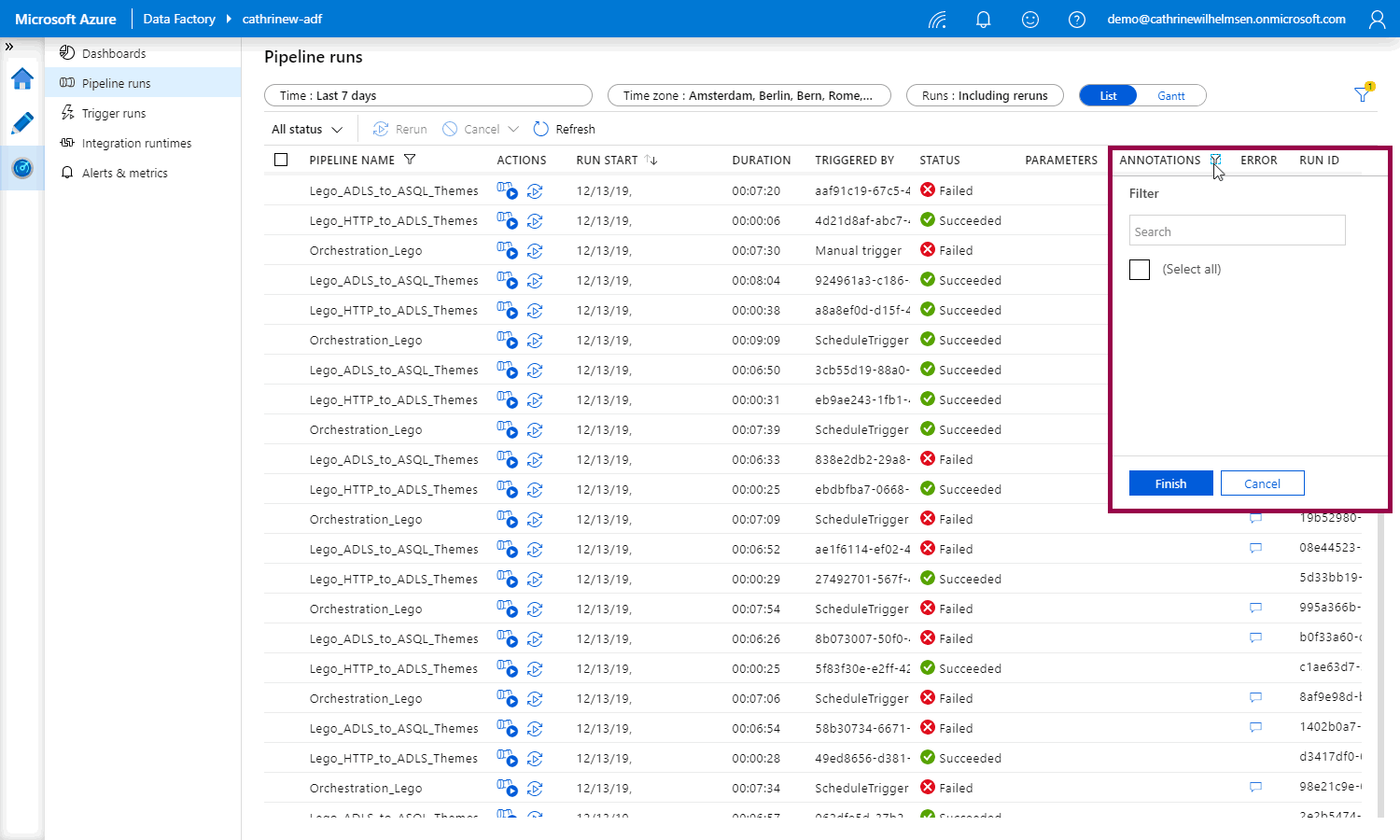 Anyway! What I really want to show is that under pipeline runs, you can filter on annotations: