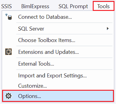Go to Tools → Options: