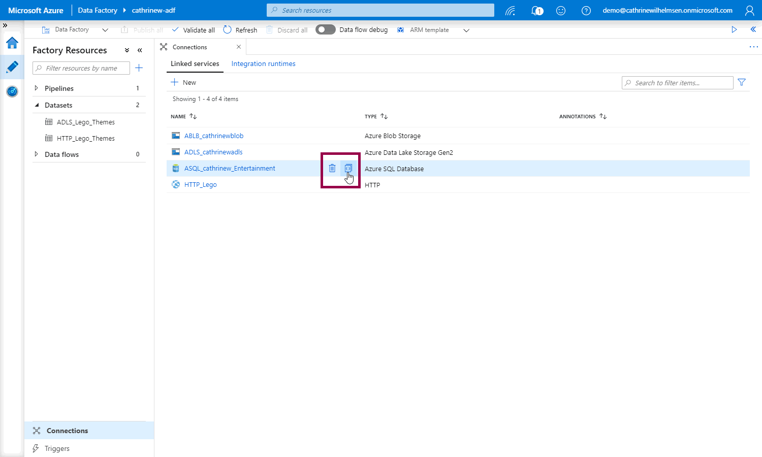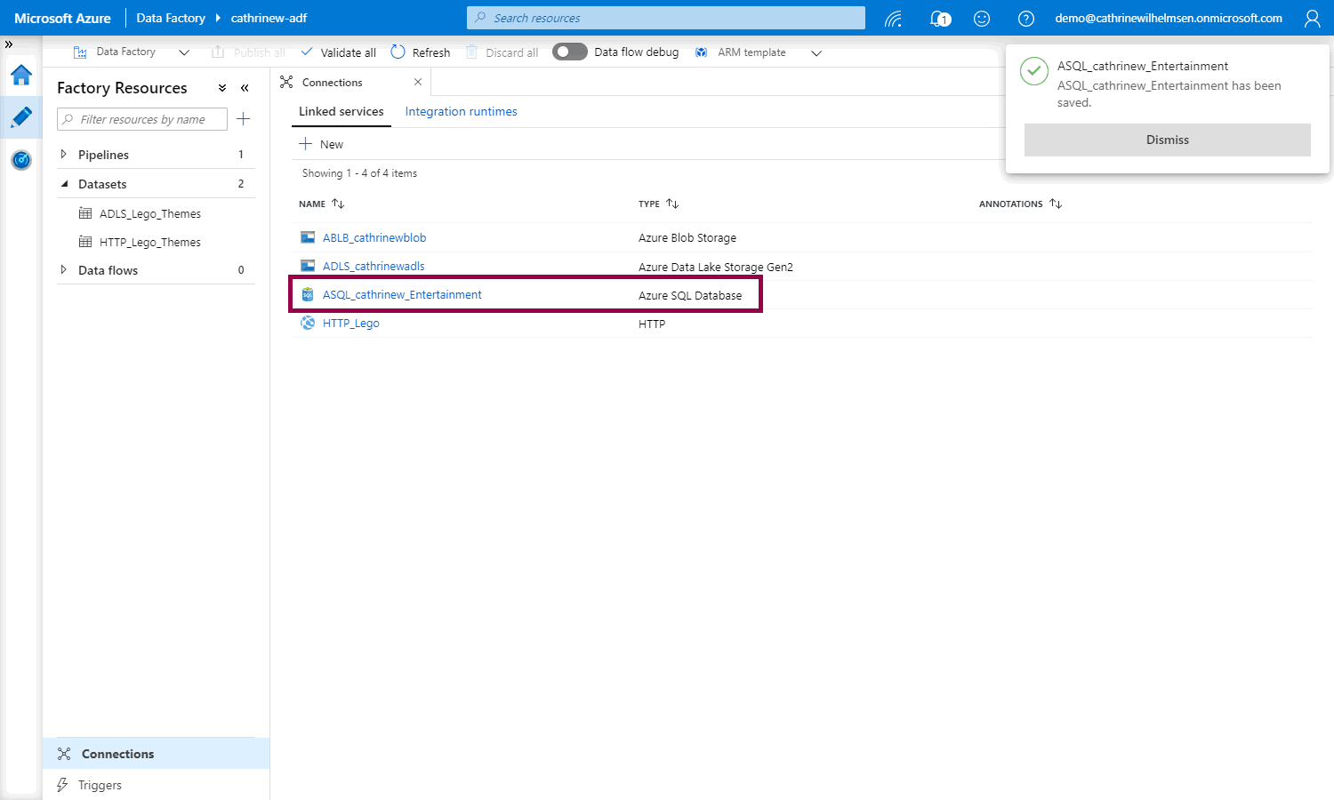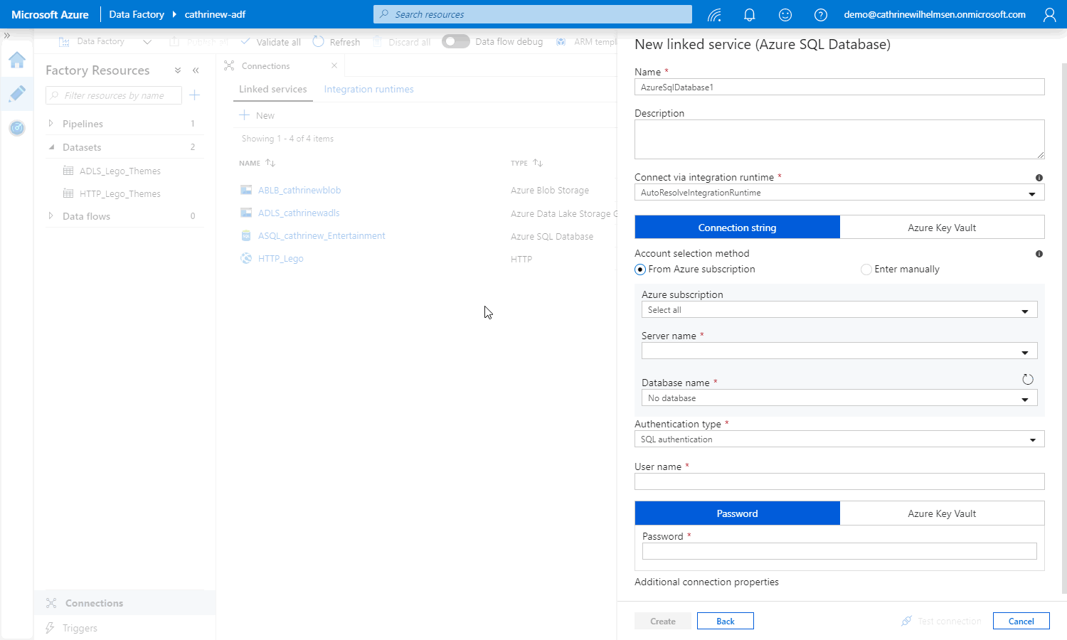At this point, you may be wondering “hey Cathrine, why did you tell me to use a managed identity, but then you created a linked service using a username and password?”