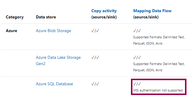 And the short answer is… I kind of have to for the next post in this series. As of right now, mapping data flows don’t support connecting to Azure SQL Database using a Managed Identity:
