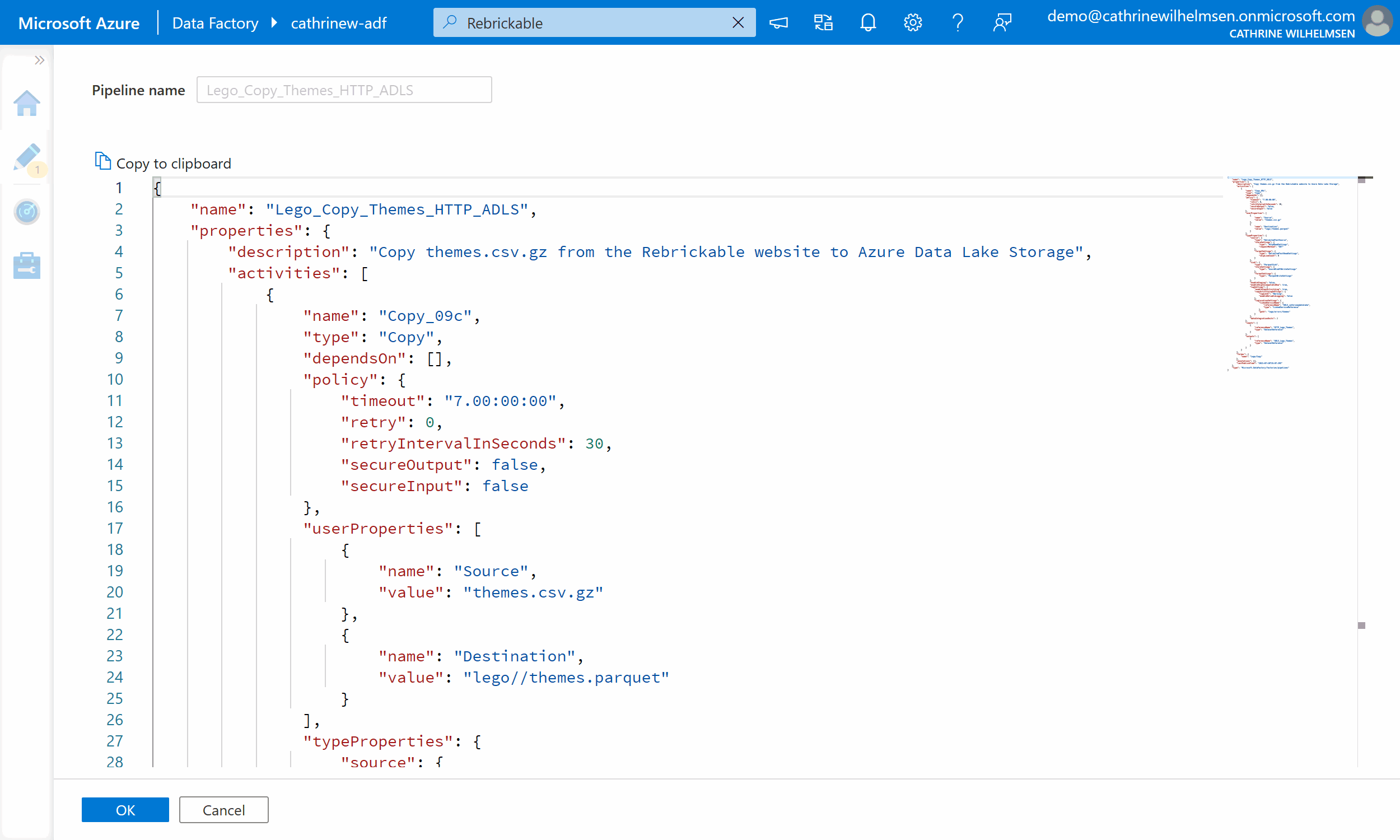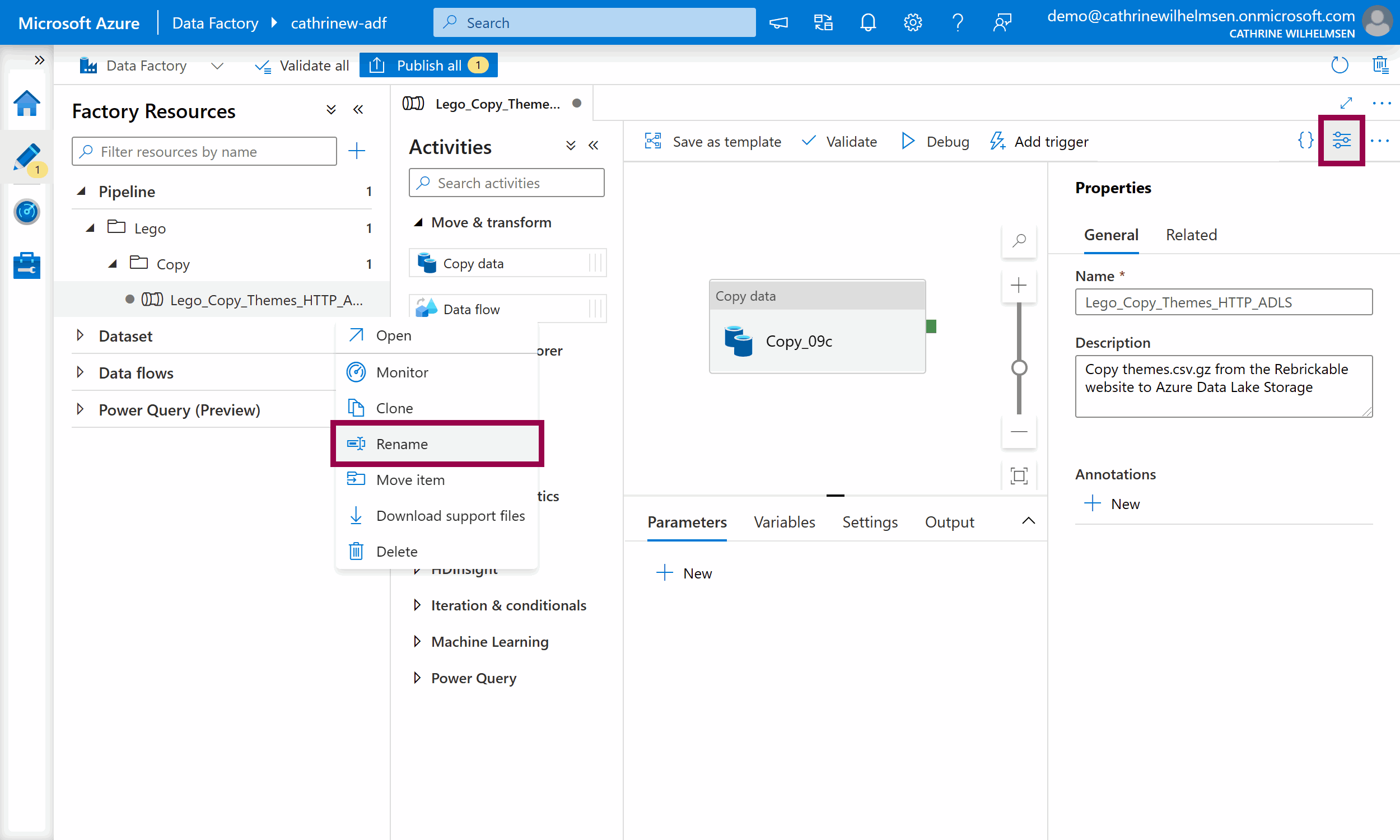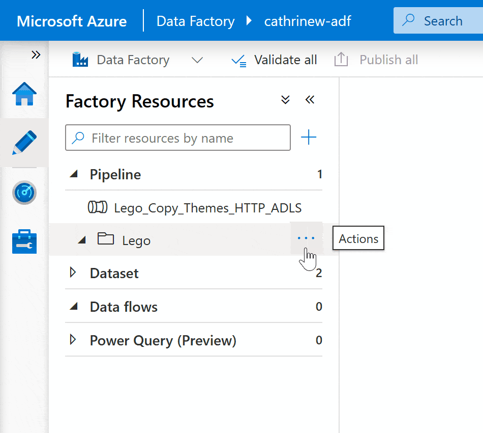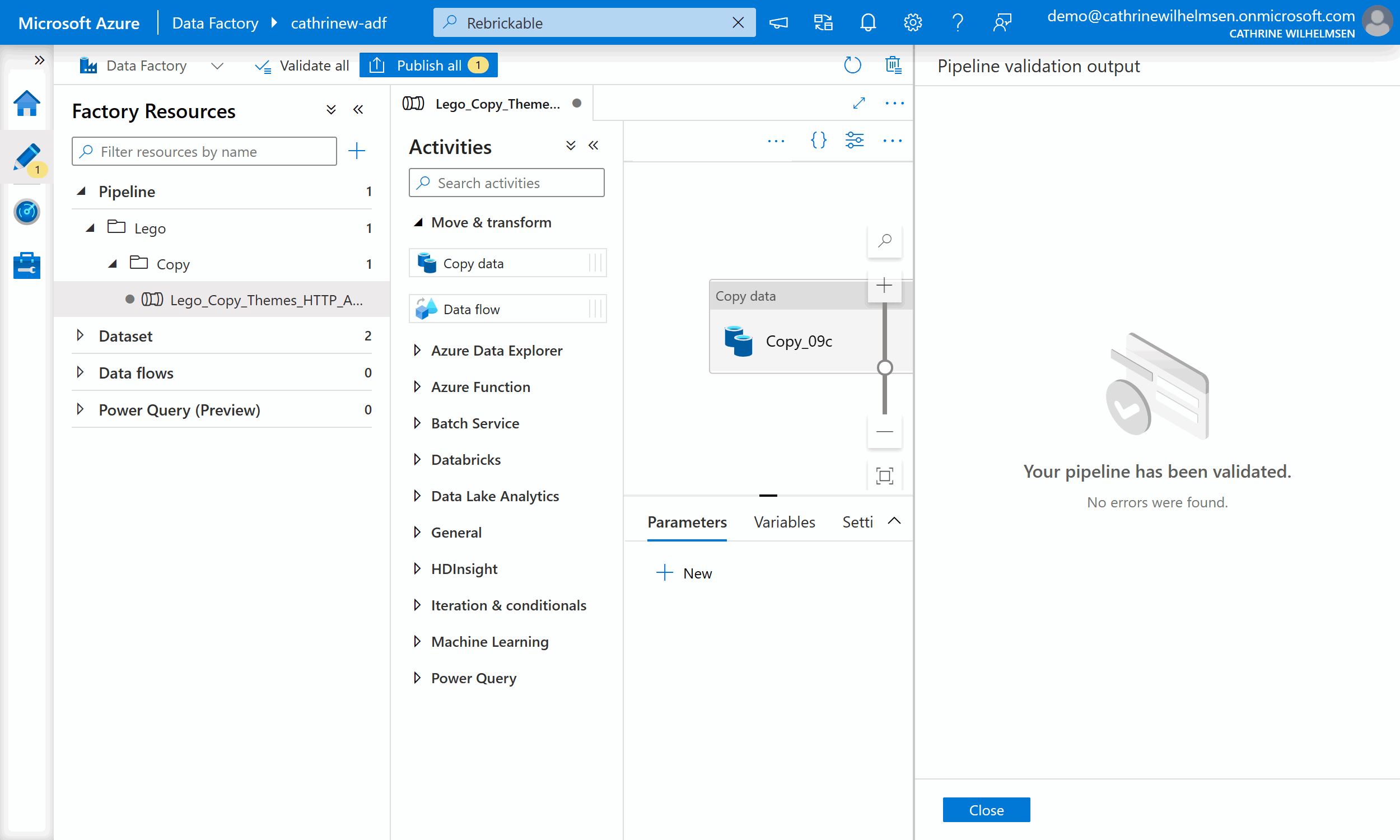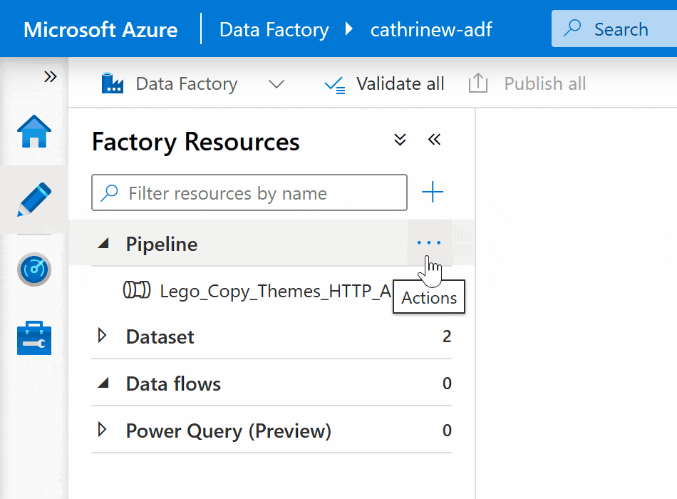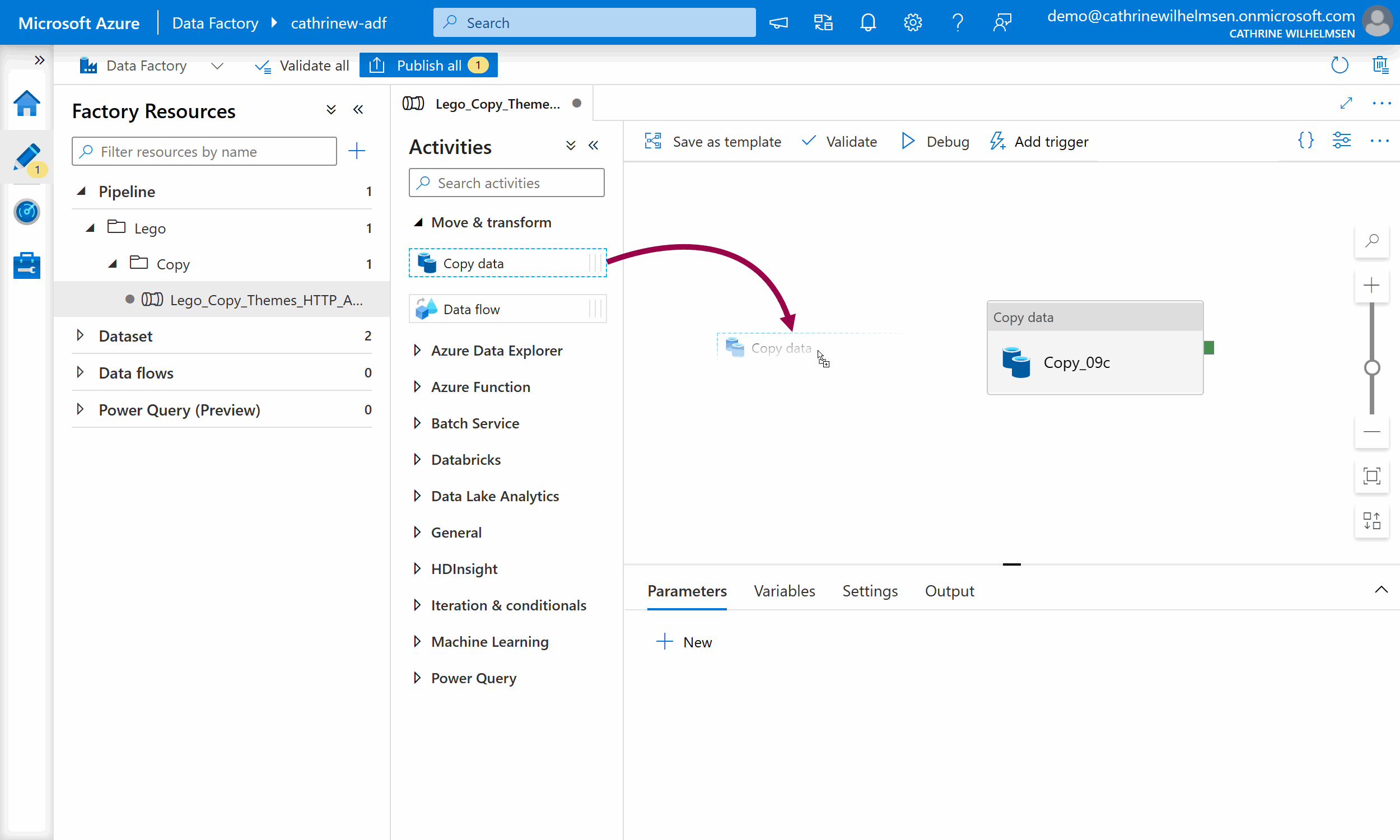 In the previous post, we used the Copy Data Tool to copy a file from our demo dataset to our data lake. The Copy Data Tool created all the factory resources for us: pipelines, activities, datasets, and linked services.