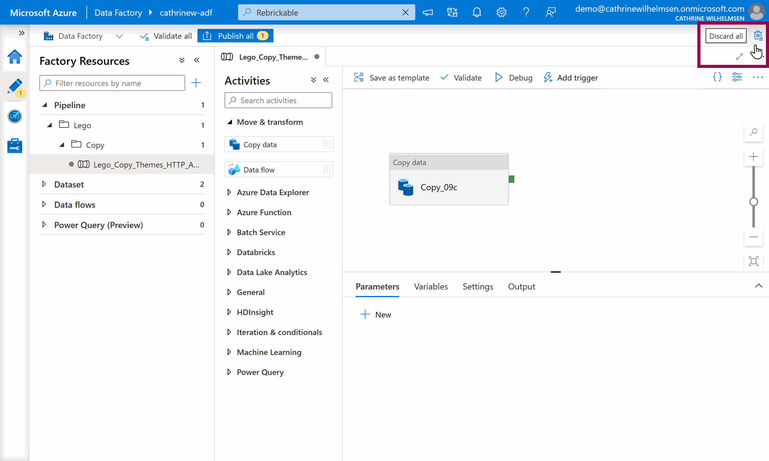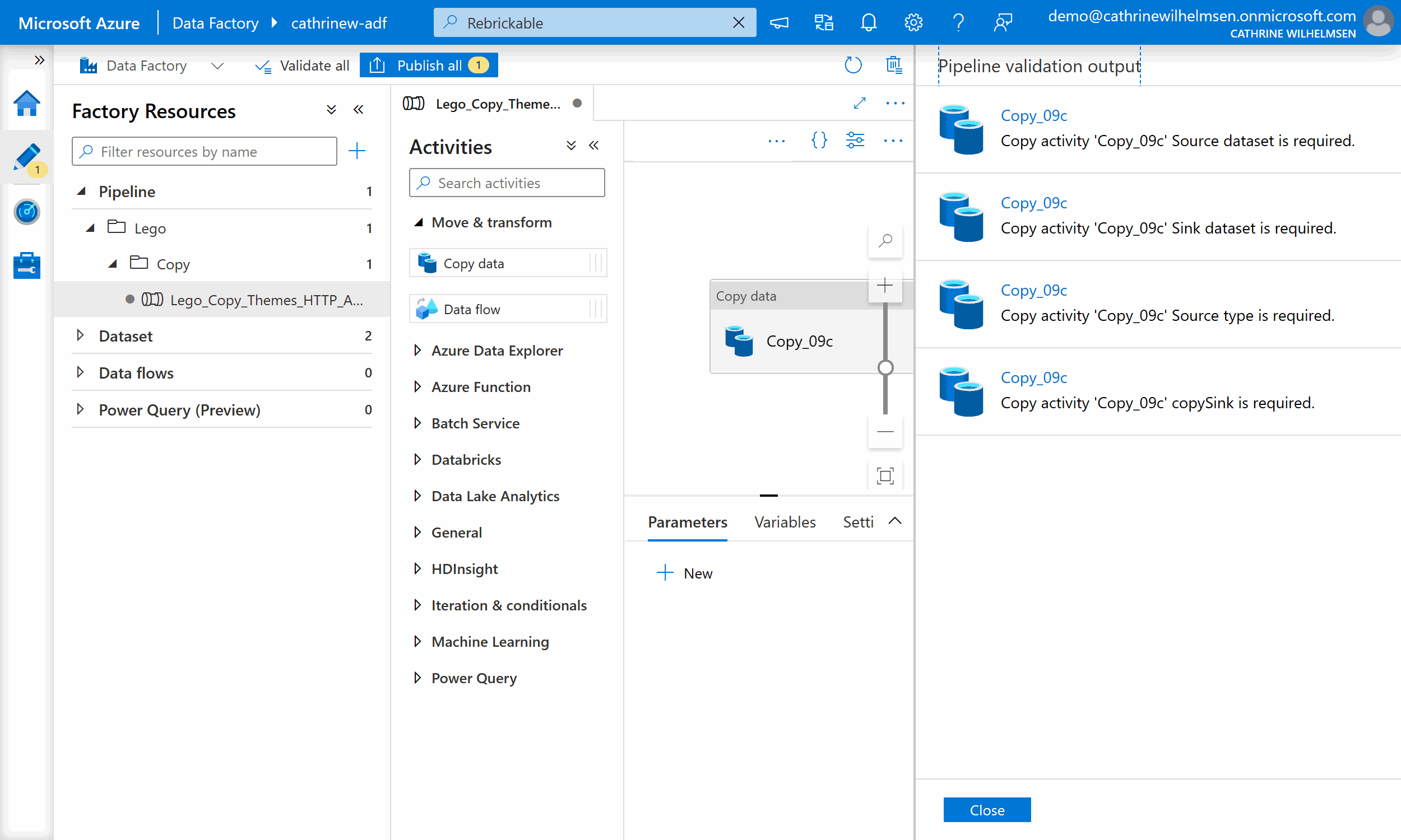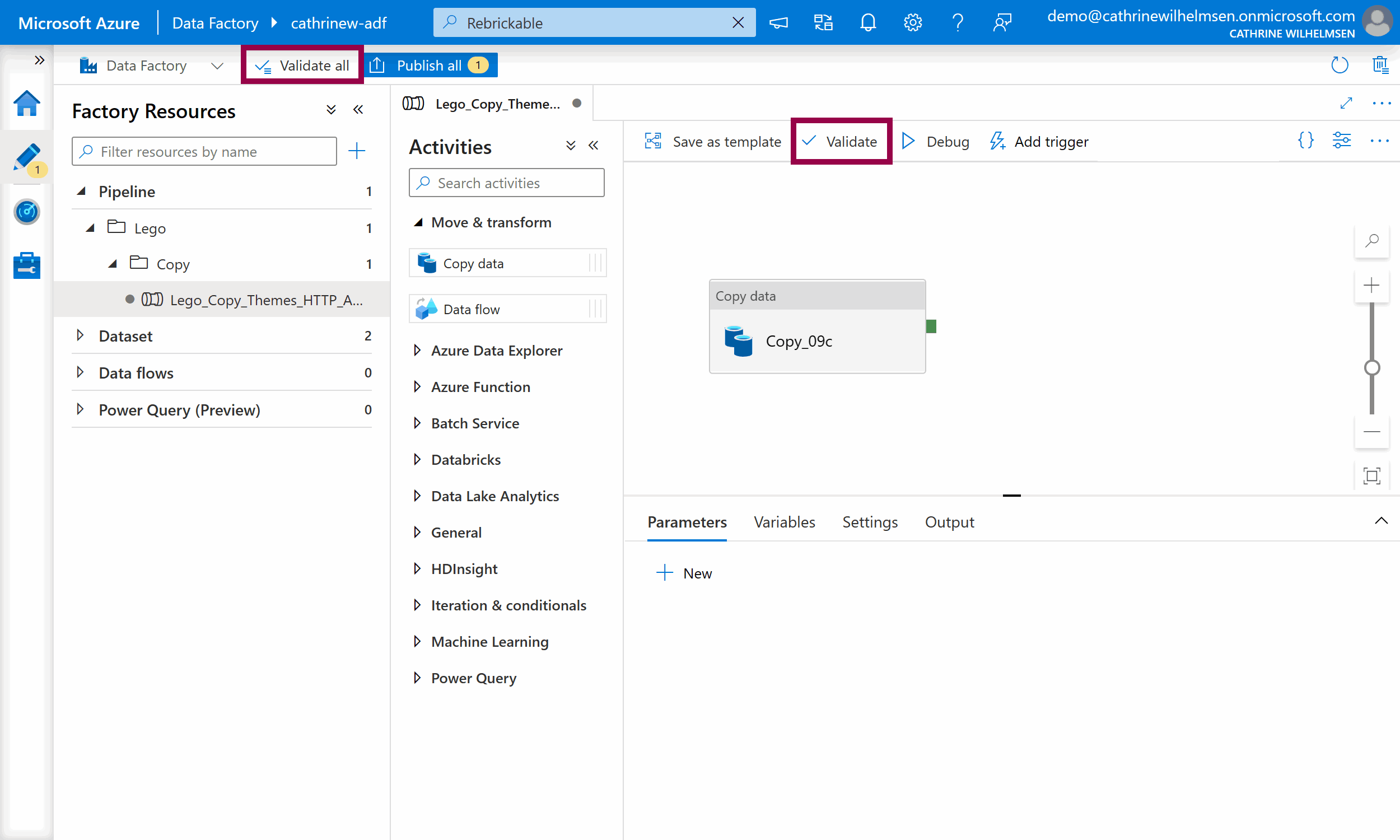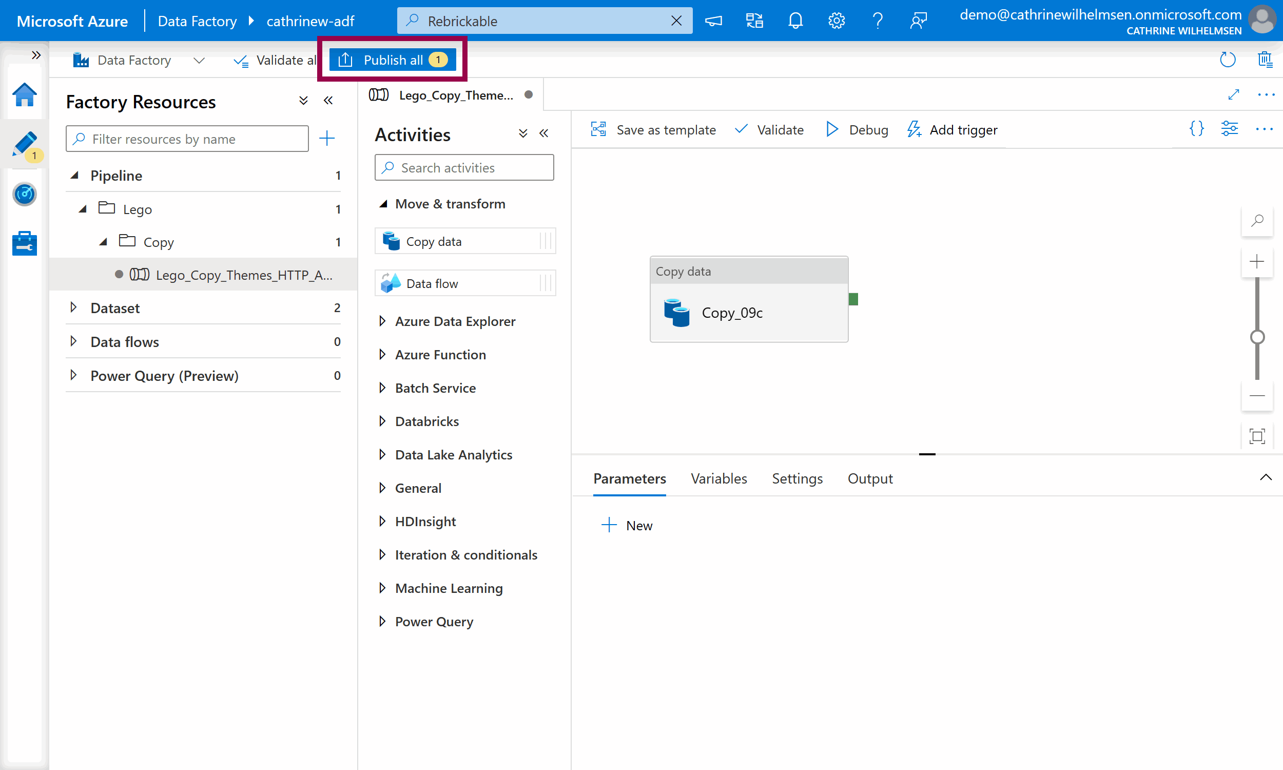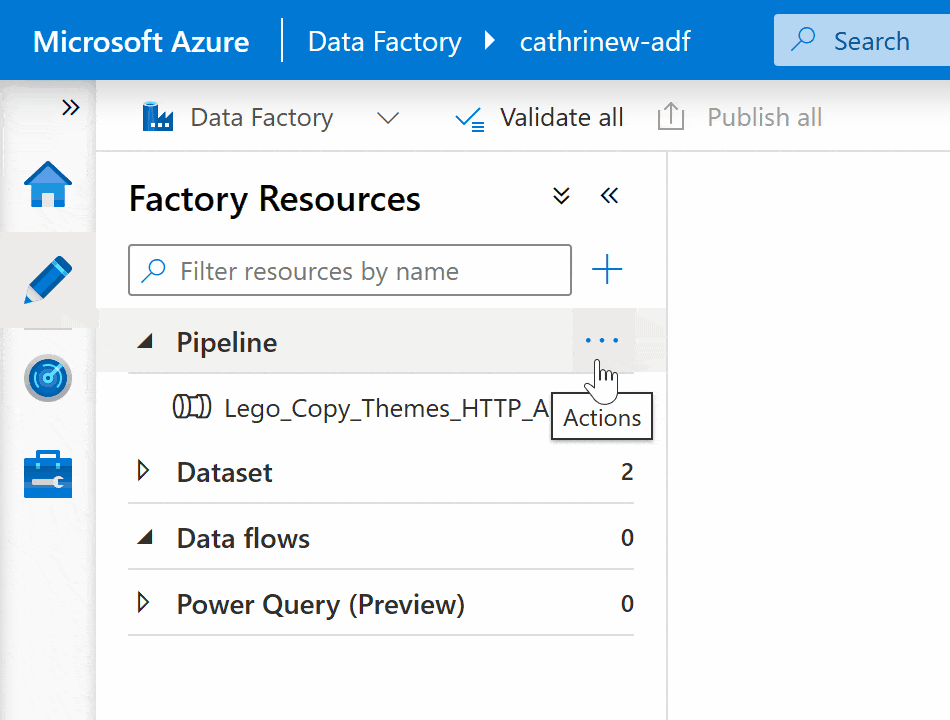 In the previous post, we used the Copy Data Tool to copy a file from our demo dataset to our data lake. The Copy Data Tool created all the factory resources for us: pipelines, activities, datasets, and linked services.