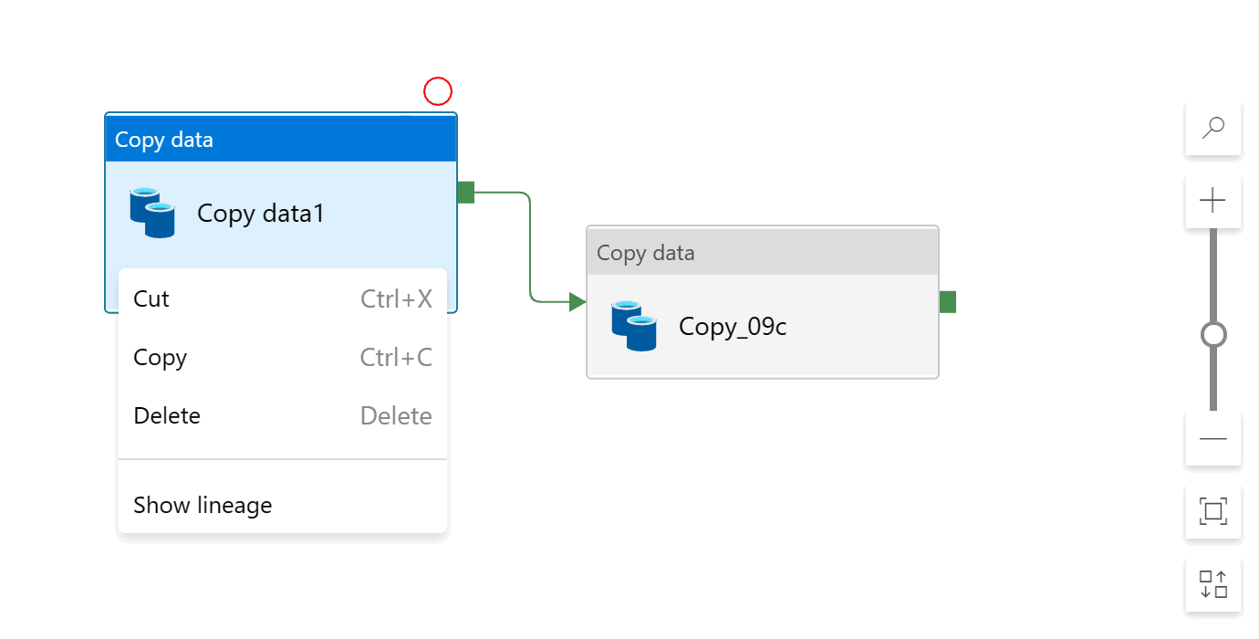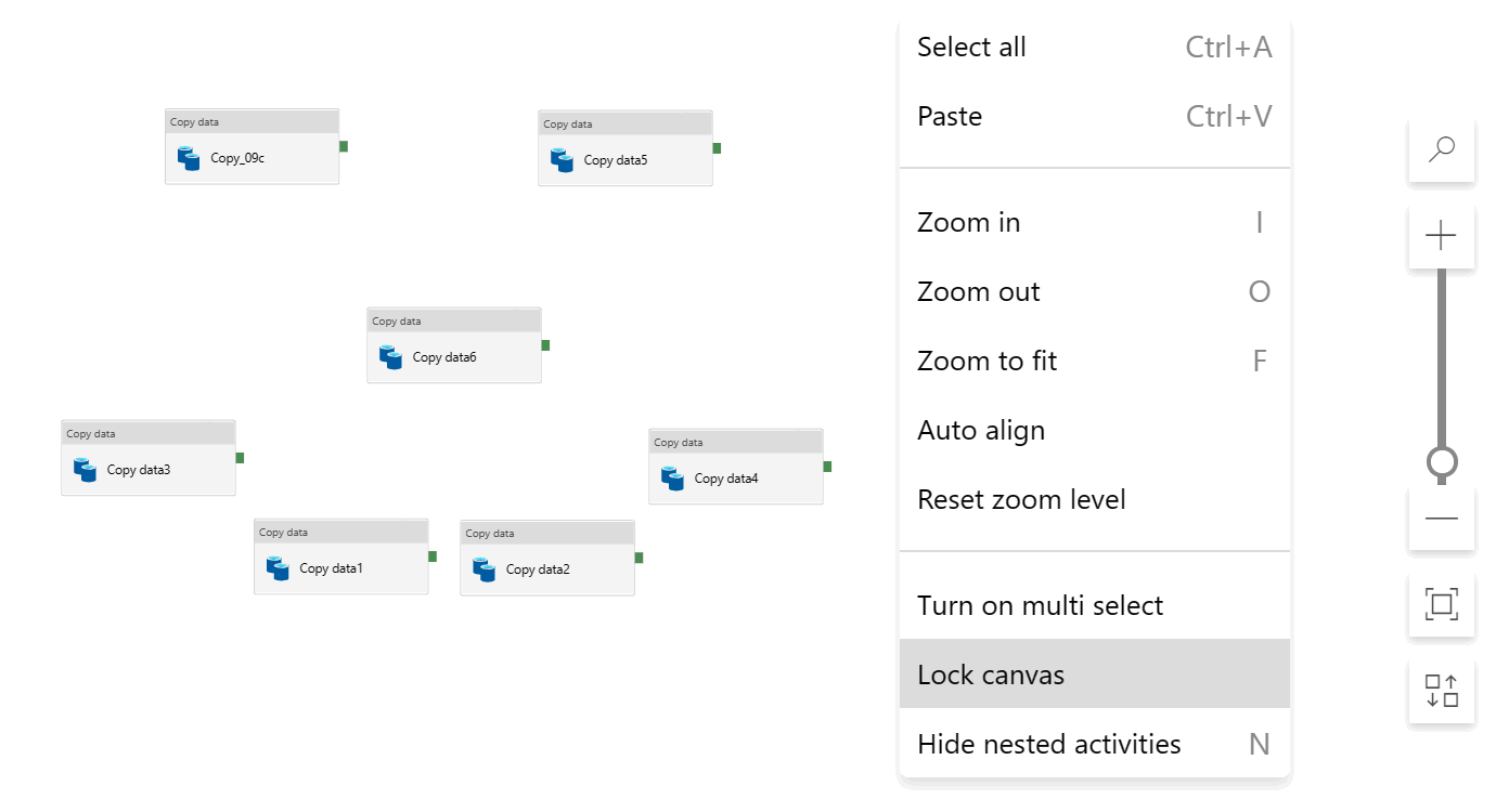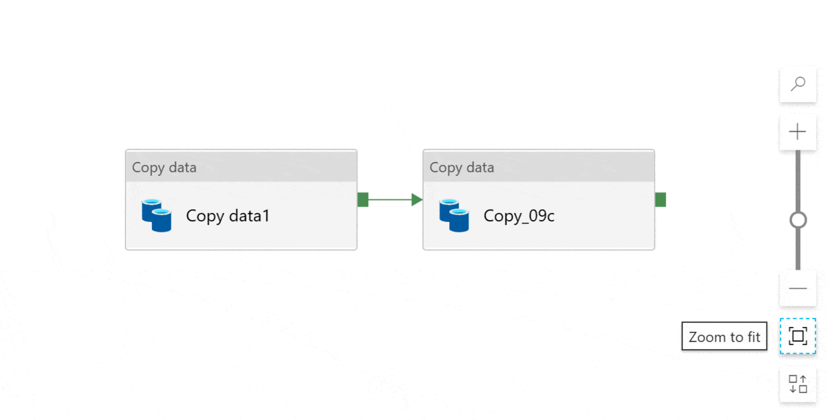 You can zoom in and out using the + and - buttons. You can also zoom to fit the entire pipeline. If you have many activities, it will zoom out for you. If you have few activities, it will zoom in for you: