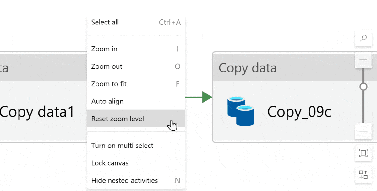 And! If you accidentally scroll or drag too much and all the activities disappear off the design canvas… (It happens more often than I want to admit…) Click zoom to fit and then reset zoom level. Tadaaa! This centers the pipeline on your screen. It’s a handy trick 🤓