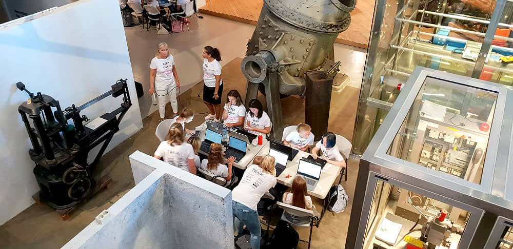 TENK Tech Camp 2018 was a 2-day event for teenage girls who are interested in technology and science. On August 9-10th, 2018, over 200 girls gathered at Teknisk Museum (Norwegian Museum of Science and Technology) in Oslo, Norway to attend workshops about coding, hacking, artificial intelligence, chatbots, design thinking, app development, web development - and rocket engineering!