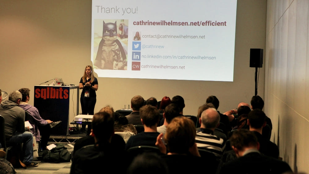 The last hour before my session was spent in the speaker room. My nerves were going crazy and I couldn’t really concentrate, but I went through my session and demos one last time. I got an Iron Man Lego figure in the precon a few days earlier, and I think he needs to join me at other events - it’s my new good luck charm! 😁 I had no clue how many would be interested in my session, but the room actually filled up. My nerves were still going crazy while I was getting ready, but then I calmed down as soon as I started speaking. I was so surprised! I was a lot more nervous in Germany and I expected the same reaction at SQLBits, but I managed to relax and enjoy the experience. I forgot to repeat some of the questions and I forgot some things here and there during my session, but overall I think it went ok. People seemed tired after a long day and ready to grab a beer, so I finished a bit early. I hope people learned a thing or two, but I’ll just have to wait and see what kind of feedback I get. It will be terrifying and interesting to watch the recording of myself so I can see what I need to improve.